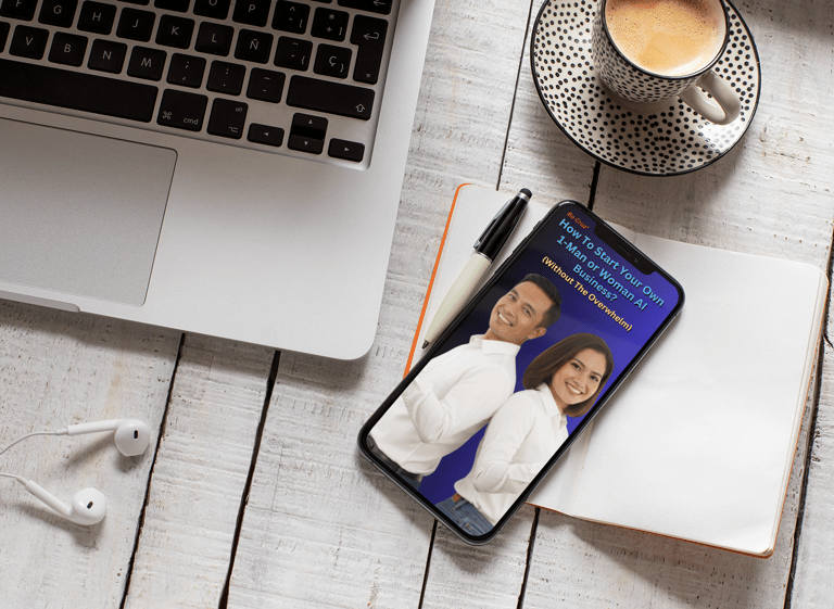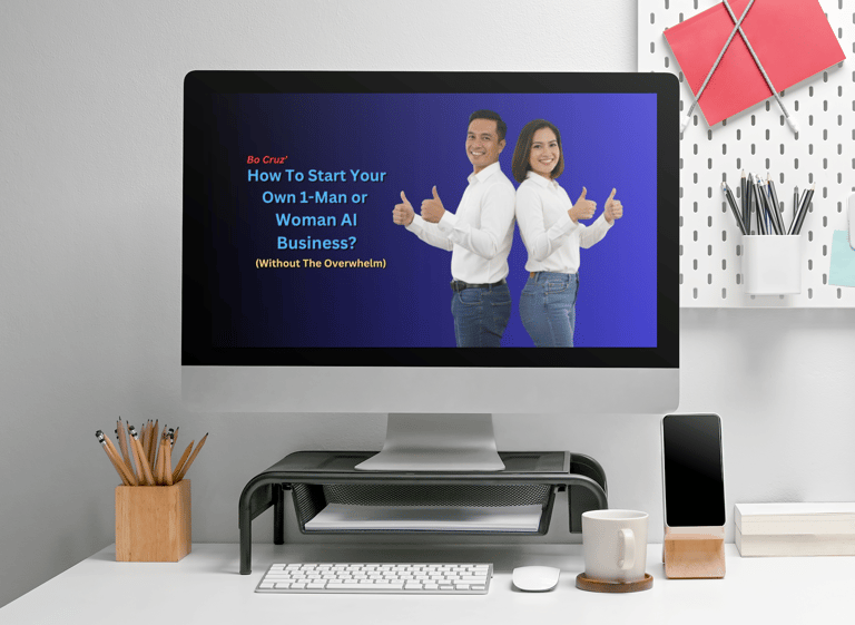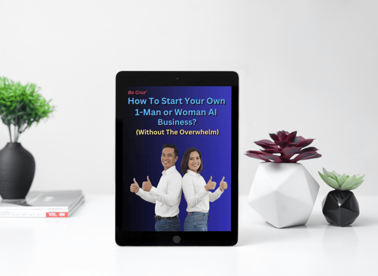 With the digital book — “How To Start Your 1-Man or Woman AI Business (Without The Overwhelm)?”, I’ll show you how breadwinners over 45 can use 7 simple AI tools to build a small but powerful automated business that works around your life.